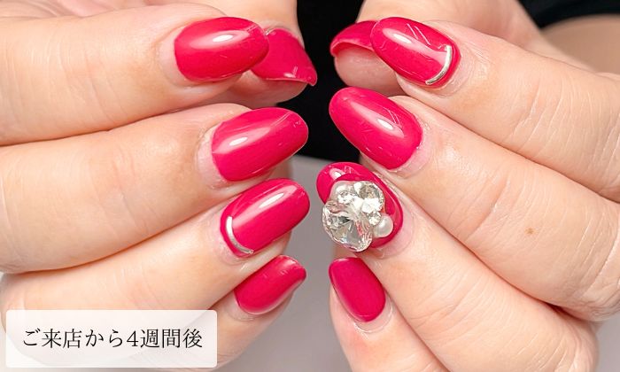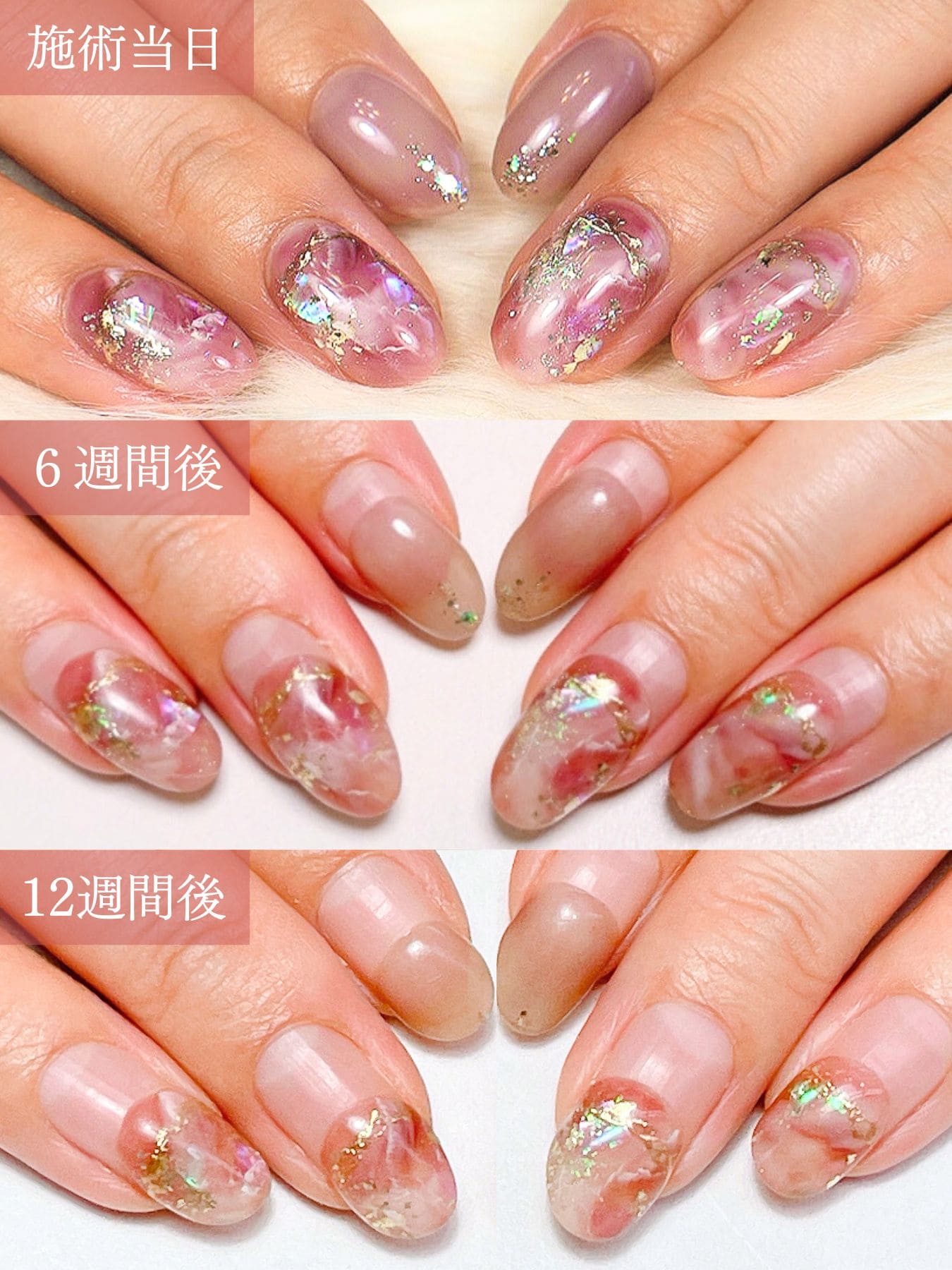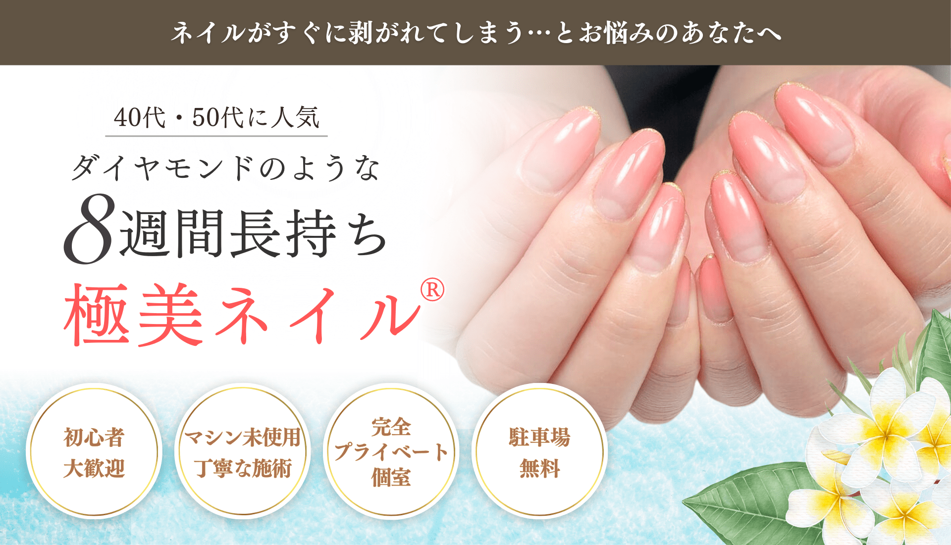 今迄に通ったネイルサロンでは、3週間経過すると、半分位は、浮いてきて…自ら剥がしてしまってましたが、今回、5週間経過しても、まったく、浮くこともなくまだまだ持ちそうでした!