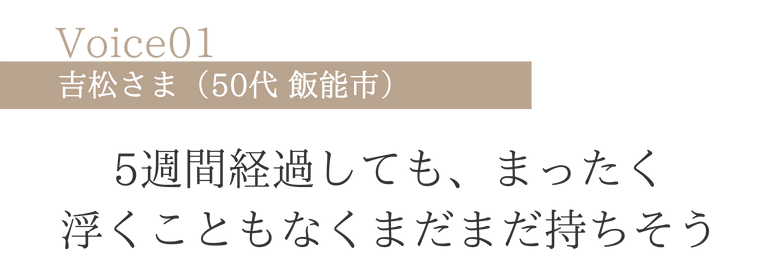 安全性や衛生面を考えまして、4〜5週間での付け替えをおすすめしておりますが、リピーター様の中には「長持ちするので」と6〜7週間で替えられる方もいらっしゃいます^^