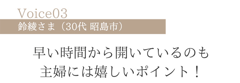 立川や羽村市などご遠方から、お車でお越しくださっている方も多数いらっしゃいます。