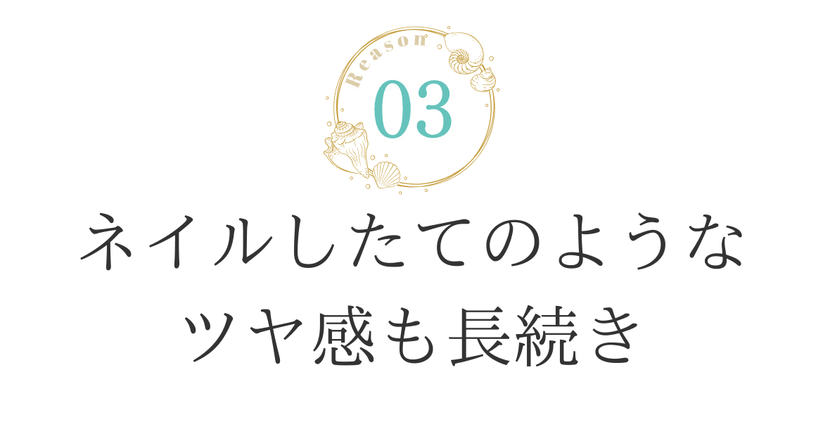 このジェルによって、まるでつけたてのようなツヤ感が、次の付け替えまで長く続きます。