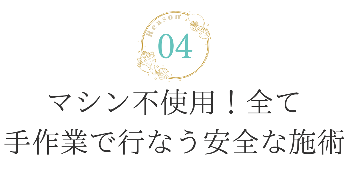 ですので、当サロンではお客様の安心安全を第一に考え、マシンを一切使用せずに全ての工程を丁寧に手作業で行なっています。